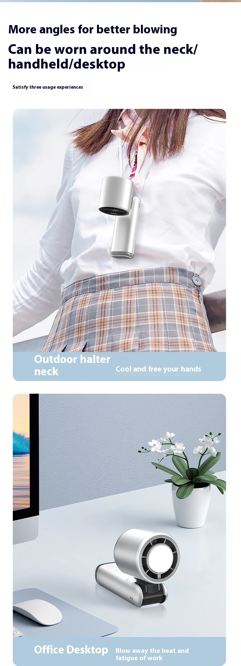 180° Adjustables: The mini handheld fan folds 180° to fit any angle.
